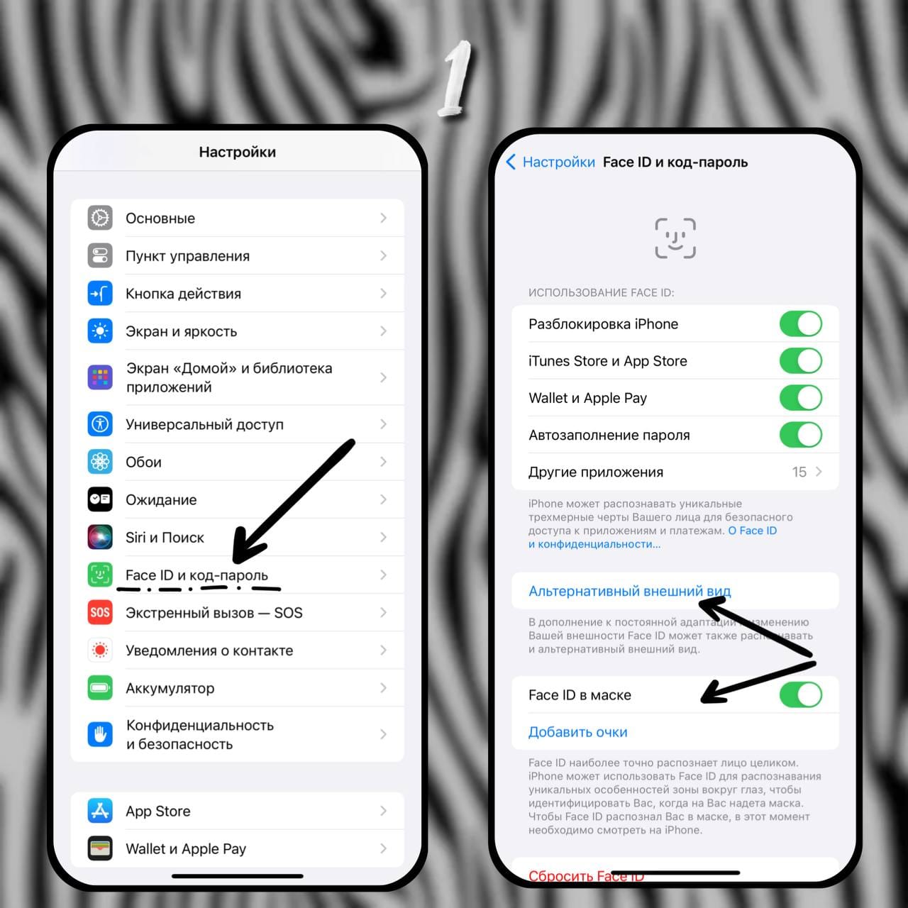 1️⃣ Откройте настройки iPhone и перейдите в раздел «Face ID и код-пароль».