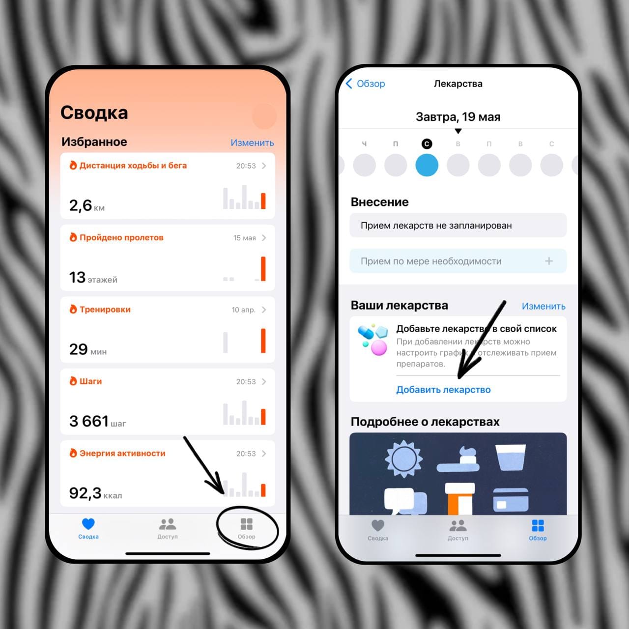 3️⃣ В списке функций выберите «Лекарства»
