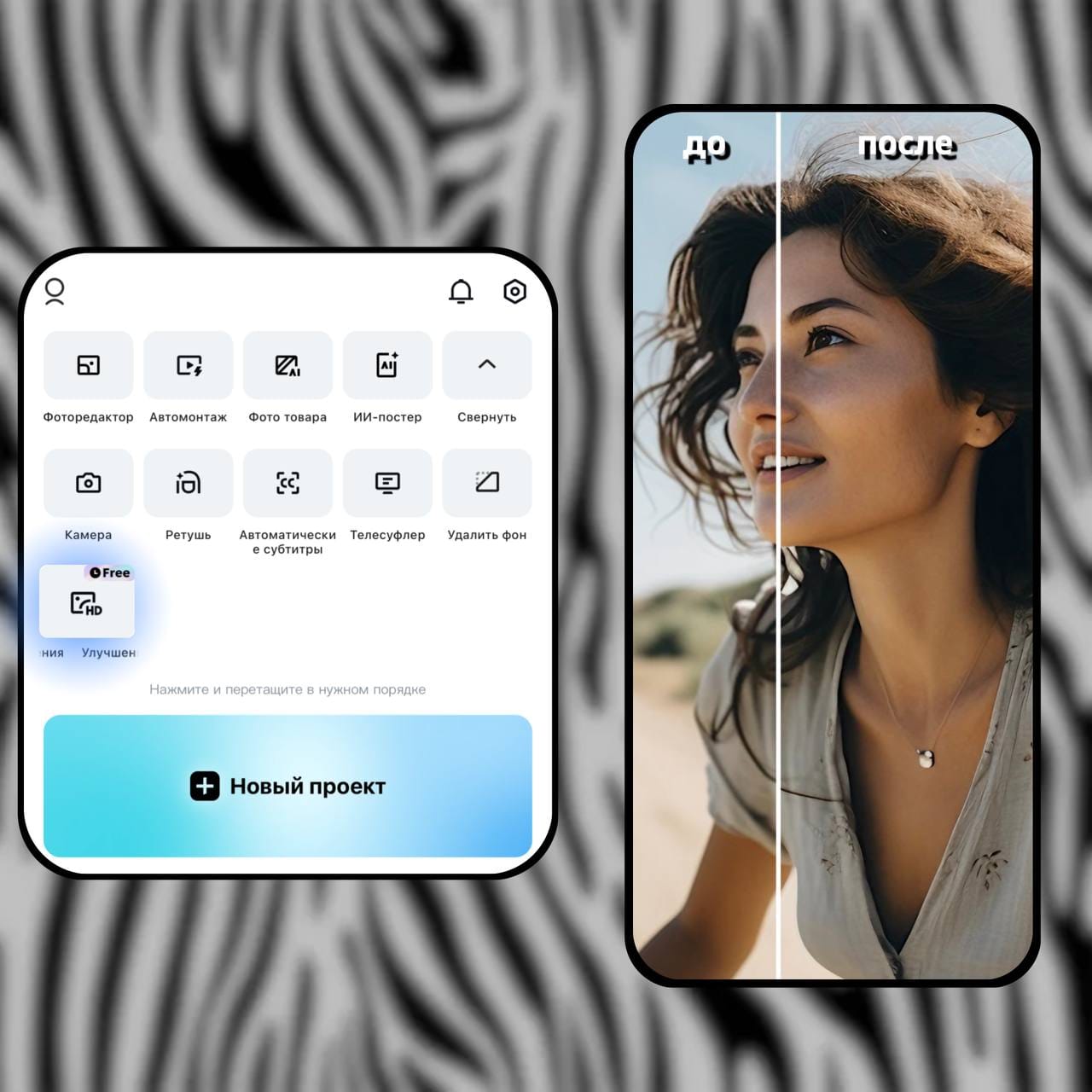 Если у вас есть фотографии с низким качеством, CapCut может помочь улучшить их до HD или Ultra HD качества.