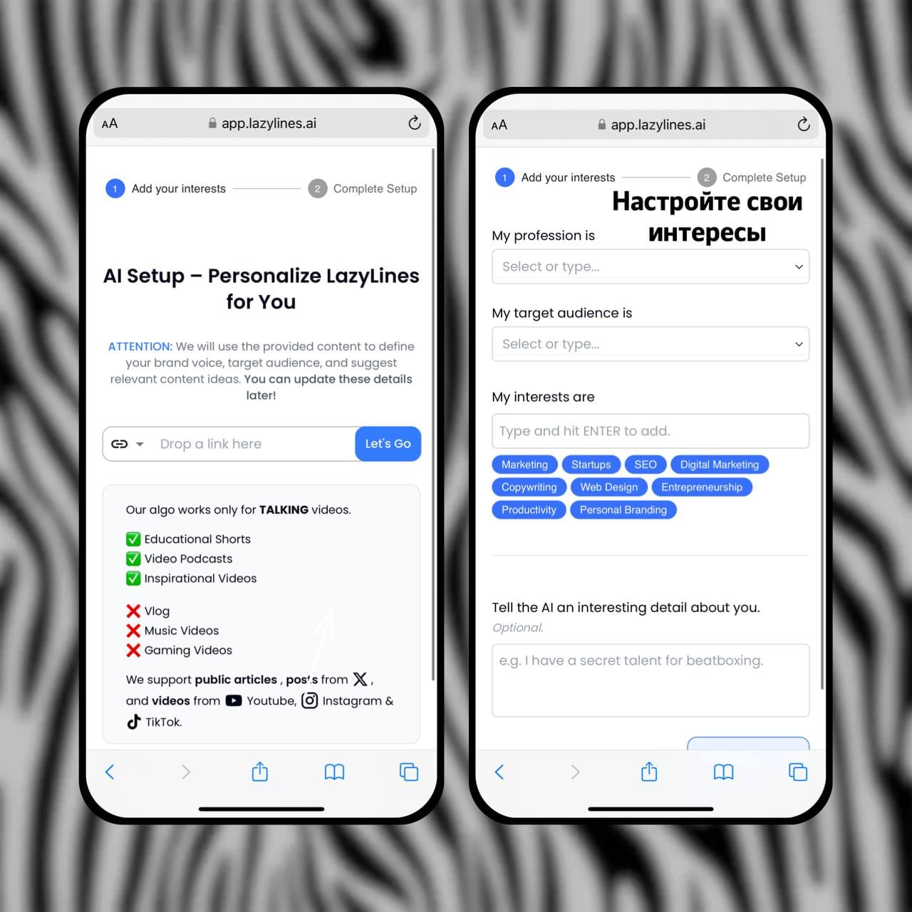 1️Зарегистрируйтесь на сайте https://lazylines.ai/