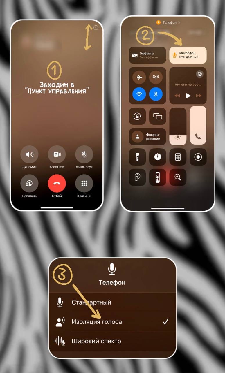 Во время звонка откройте Пункт управления (смахните вниз от правого верхнего угла экрана) ➜ нажмите на «Микрофон» ➜ выберите «Изоляция голоса»✔️