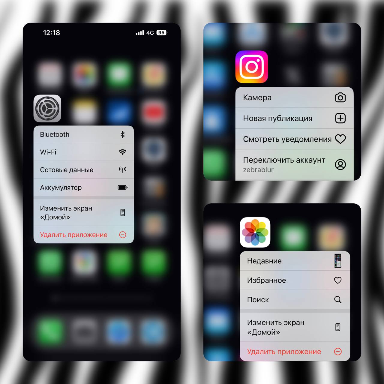 Если зажать иконку приложения Настройки, можно быстро попасть в меню управления Bluetooth или Wi-Fi.