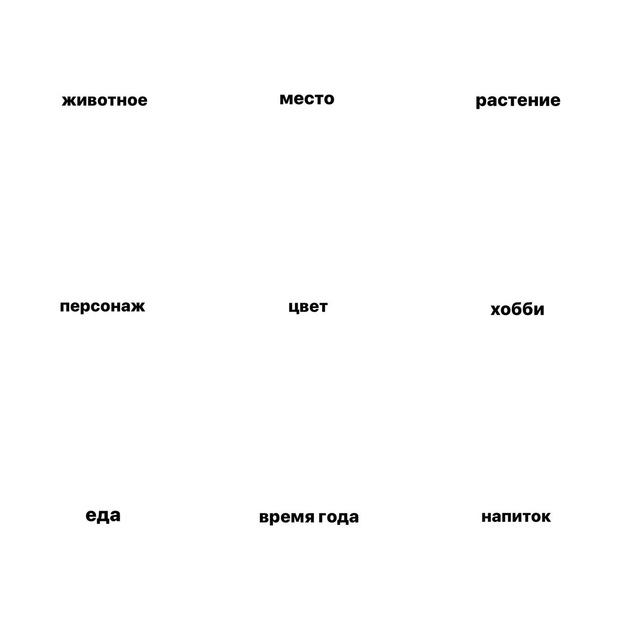 3️⃣ Теперь по порядку начните заменять ячейки со словами картинками из Pinterest и сохраняйте их поочередно по одной. Всего у вас должно получится 10 кадров.