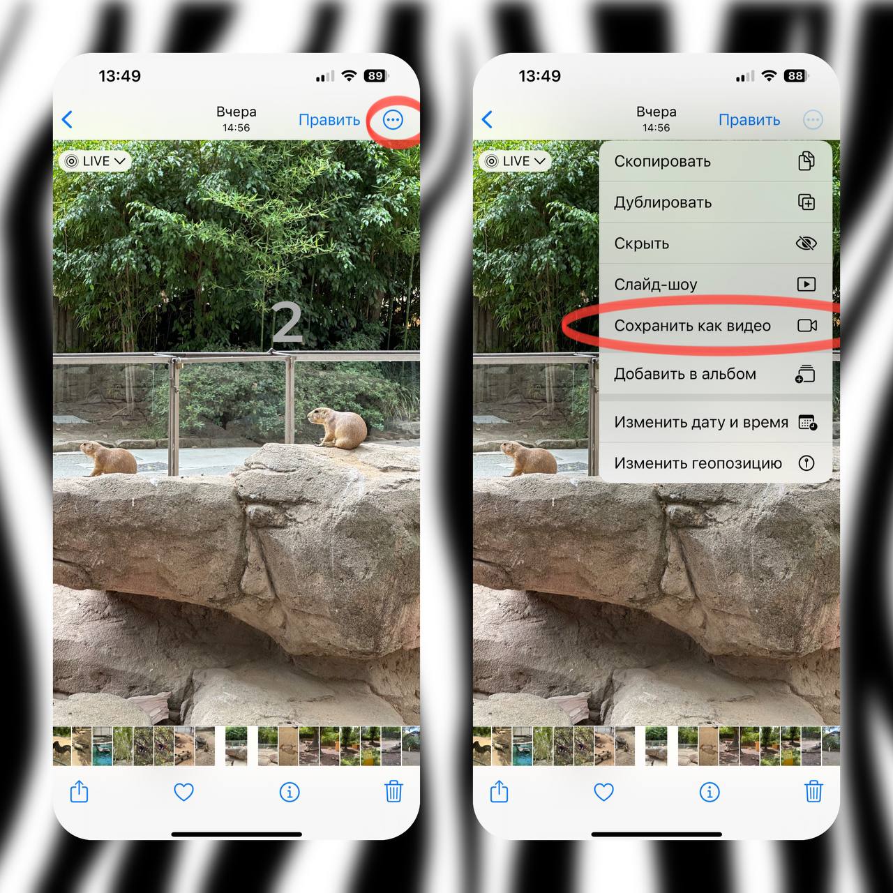 Для этого в вашей фотогалерее нажмите на три точки и выберите "Сохранить как видео"✔